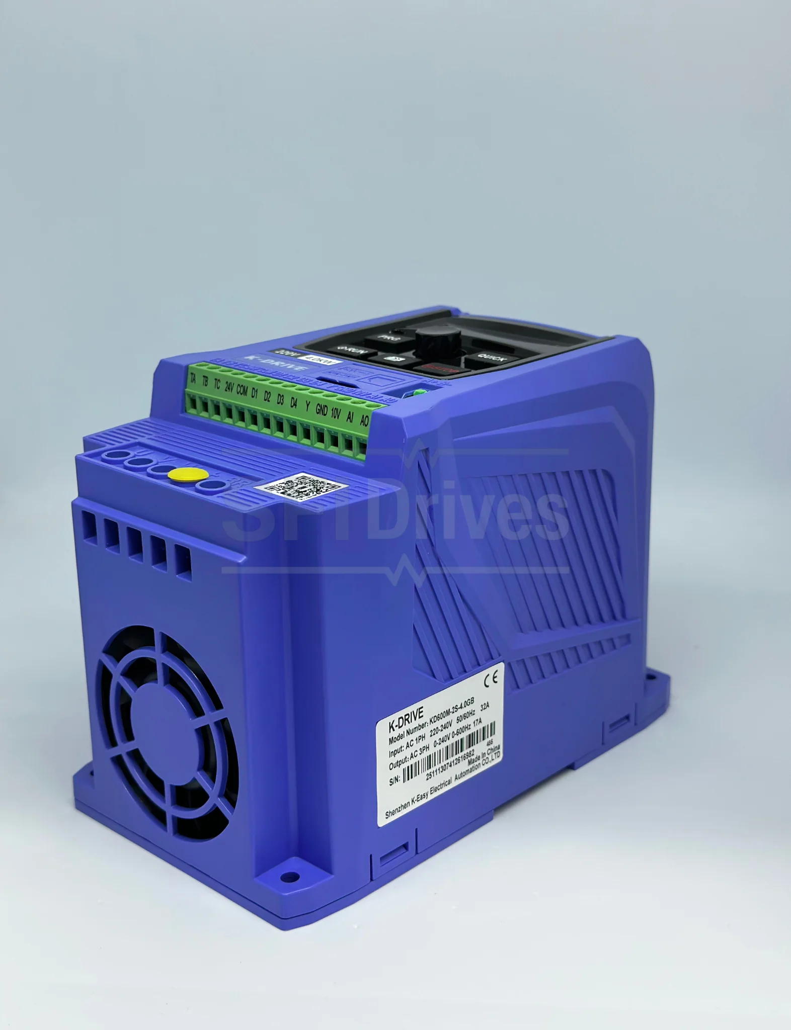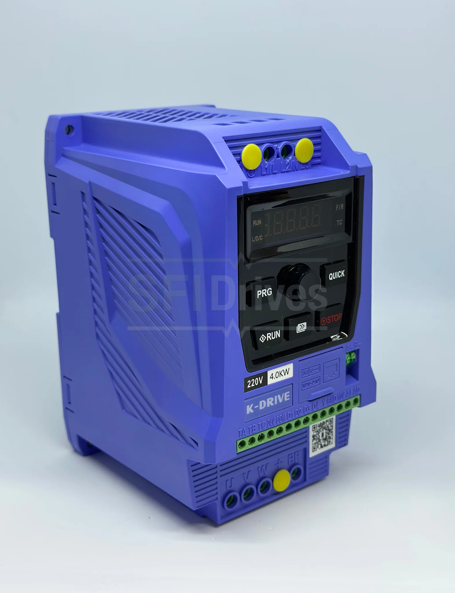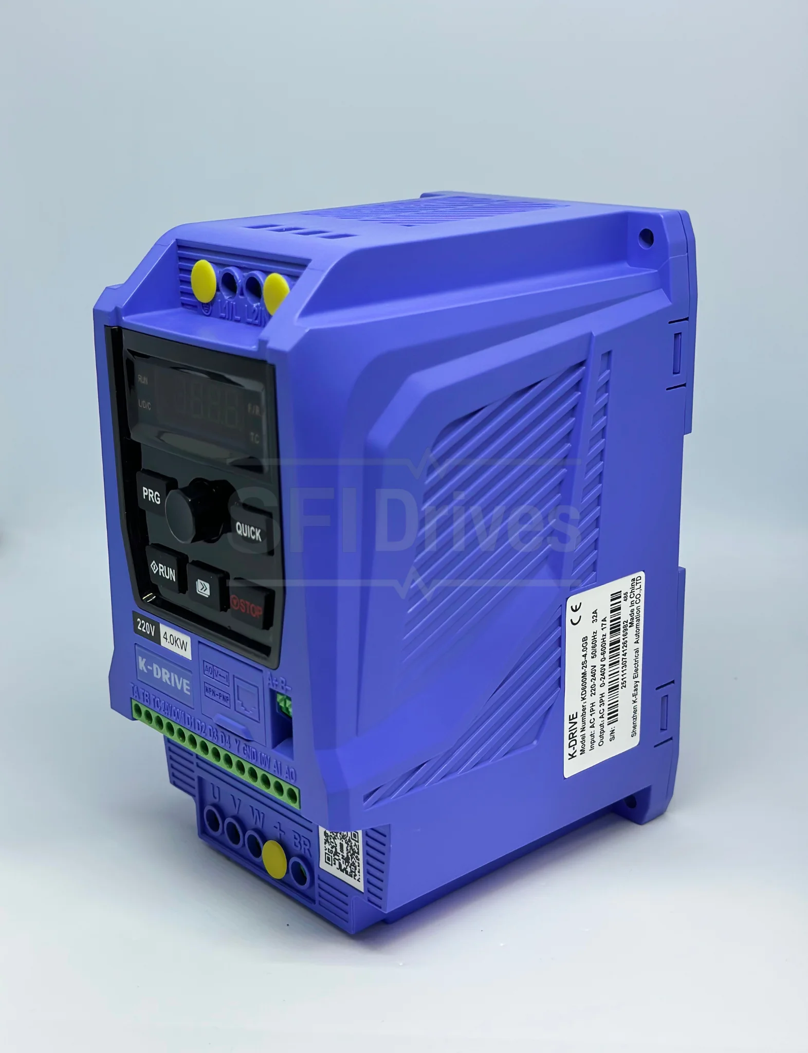 Variador de Frecuencia KD600M-2S-4.0G 5.5HP (4.0kW) con entrada monofásica/trifásica 220V y salida trifásica 220V. Incorpora control V/F, SVC y Torque Control, frecuencia de salida hasta 600Hz y comunicación MODBUS RS485. Ofrece 180% de par de arranque, alta precisión de velocidad y excelente capacidad de sobrecarga, ideal para aplicaciones industriales que requieren potencia, eficiencia y confiabilidad.